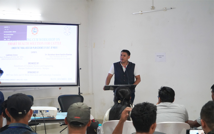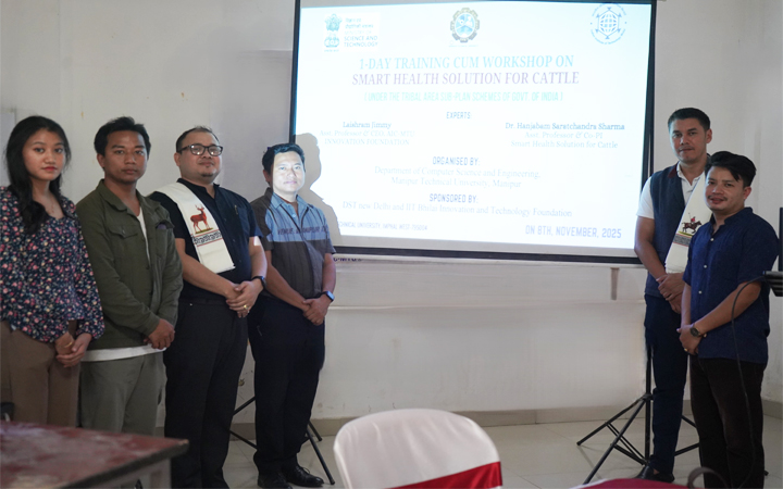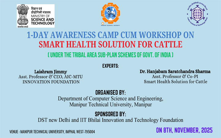 The Department of Computer Science & Engineering, Manipur Technical University (MTU), organized a One Day Awareness Cum Workshop on “Smart Health Solutions for Cattles”, sponsored by the Department of Science and Technology (DST) and the IIT Bhilai Innovation and Technology Foundation.