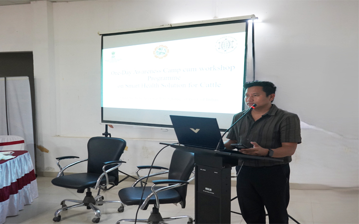 Additionally, Mr. Laishram Jimmy, an IoT expert, shared an engaging session on the basics of IoT devices and their applications, explaining the principles of sensor integration, data collection, and wireless connectivity for smart health solutions in the livestock sector. The workshop successfully blended expert talks, demonstrations, and interactive discussions to encourage participants to adopt innovative IoT-based practices in cattle health management.
