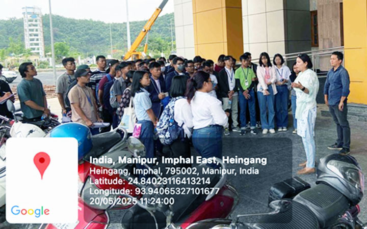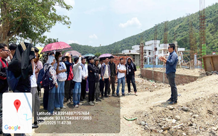 The visit was coordinated by a team of faculty members from the Department of Civil Engineering — Dr. Sonika Thongram, Dr. Khwairakpam Selija, Mr. Koko Karbia, Mr. Kosygin Leishangthem, and Dr. Momo Nameirakpam — and included participation from students of the 4th and 6th semesters. During the two days, students had the opportunity to engage with on-site engineers, contractors, and officials from the Public Works Department (PWD), Government of Manipur, gaining valuable insights into the real-world challenges and responsibilities of a civil engineer. This report presents a comprehensive overview of the site visit, highlighting its objectives, activities conducted, key observations, and the learning outcomes achieved through this practical exposure.