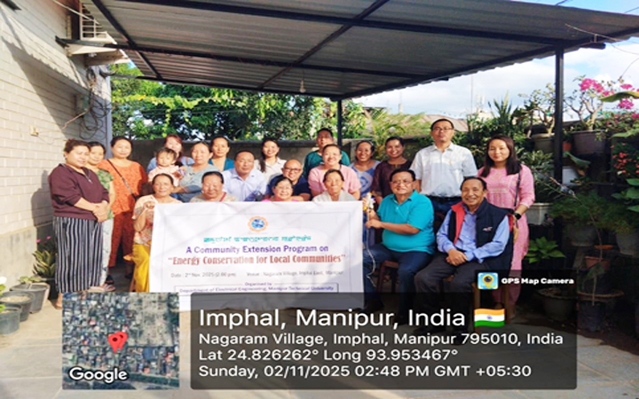 A Community Extension Program on “Energy Conservation for Local Communities” was organized by the Department of Electrical Engineering, Manipur Technical University, on 2nd November 2025 at 2:00 PM at Nagaram Village, Imphal East, Manipur.
