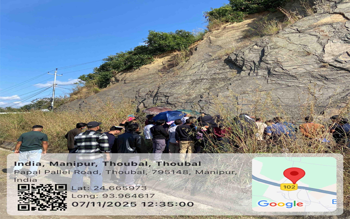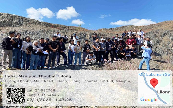 The students and faculty will assemble at MTU campus at 9:30 AM and depart for the Imphal–Kakching road section at 10:00 AM using university transport, after which selected geological exposure points will be visited for observation of rock types, geological structures and slope conditions. Faculty members will explain the engineering relevance of each feature and interact with students at different stop points while students record field notes, sketches and photographs. After completing all observation sites, the team will return to campus in the afternoon. |