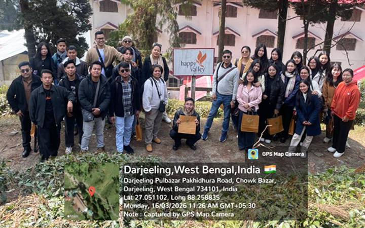 An enriching industrial visit to the iconic Happy Valley Tea Estate in Darjeeling. Nestled in the misty hills of West Bengal at an elevation of 1,800-2,000 meters, this 120-year-old estate produces some of the world’s finest Darjeeling teas, renowned for their muscatel flavor. The visit, coordinated by the Department of Management Studies, aimed to bridge classroom theory with real-world business operations in the plantation industry—a key sector in India’s rural economy.