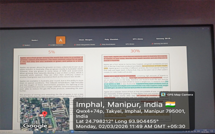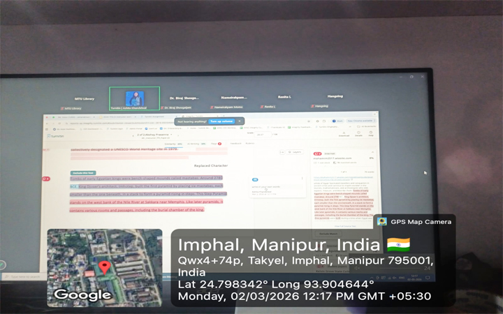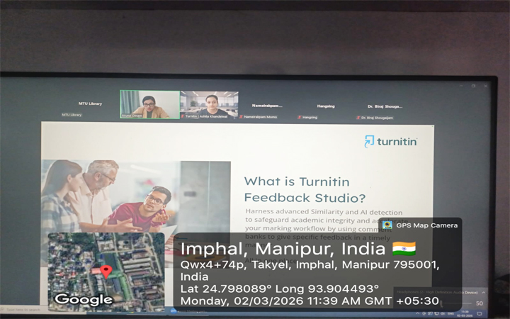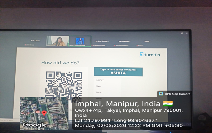 1. The Turnitin Anti- Plagiarism Software Training for Instructors was concluded successfully on 2nd March, 2026 from 11:30 am to 12:30 pm via Zoom. The training session was organized by Aruna Chanu Oinam (Assistant Librarian, MTU Library) and hosted by Ashita Khandelwal (Customer Onboarding, Turnitin). Faculties of MTU actively participated in the training session.