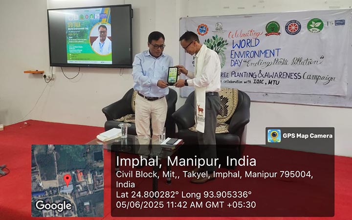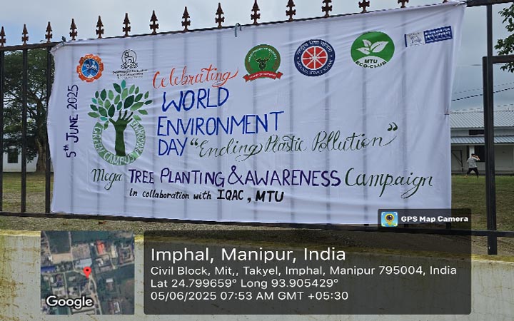 - About the event: Manipur Technical University observed World Environment Day with a tree plantation drive and an awareness lecture. Saplings were planted on campus with support from the Horticulture and Forest Departments. Professor Lal Bihari from Manipur University delivered a talk on “Be the Change: Break the Chain – Plastic and Water Pollution.” The event aimed to promote sustainable practices among students, staff, and outsider.